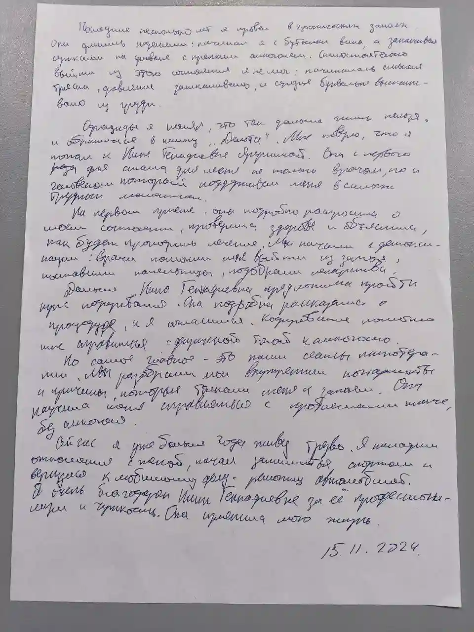 Часто пациенты и их родственники обращаются к нам в экстренных ситуациях, когда необходимо быстро принять меры. В таких случаях наша бригада специалистов готова оперативно выехать на дом или принять пациента в стационаре. Мы предлагаем не только кодирование, но и комплексную помощь, включающую детоксикацию, психологическую поддержку и реабилитацию. Алкогольная зависимость – это не только физическая проблема, но и психологическая, и важно работать с обеими составляющими. Именно поэтому в нашей клинике мы предлагаем комплексное лечение, которое дает стойкий результат.